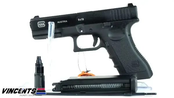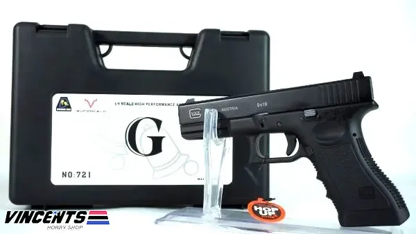 Double Belle 721 Glock 17 Black is a gas blow back airsoft pistol with a semi-auto firing function. It is best to use with .20 grams bbs.