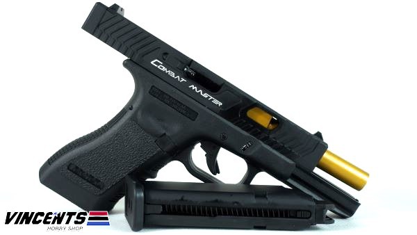 EC 1104 Glock 17 John Wick Taran “Gold Barrel” is a gas blowback airsoft gun with a semi-auto firing function. Most popular handgun in the USA because of its versatility. Best use as a backup weapon in a close-quarter battle.