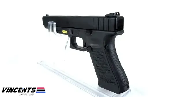 WE Glock 34 Gen 4 Black is a gas blowback airsoft pistol with semi-auto firing function. It is Glock’s longest full-size version with polymer body and metal slide. It has upper front-end opening for visible outer barrel and to reduce overall weight of the slide.