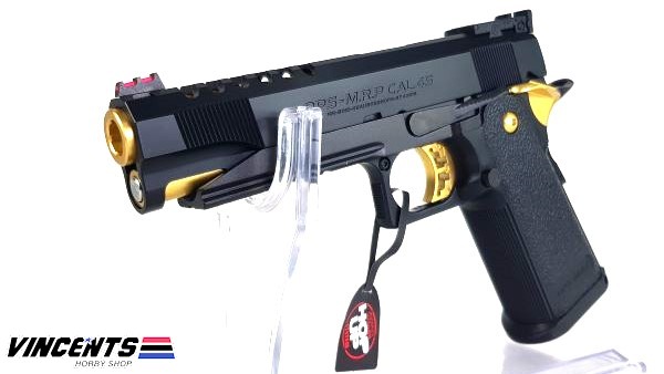 Tokyo Marui Hi Capa 5.1 “GOLD MATCH” has black with gold garnishing and gold outer barrel. This pistol is good to use for battle because of the high capacity magazine.