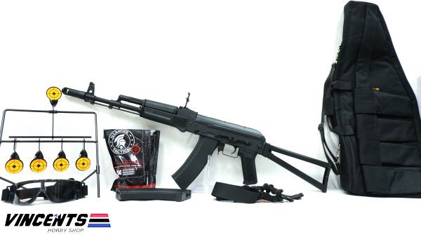 An awesome treat for airsoft beginners, enthusiasts & even airsoft professionals who want value for money. Everything you need to start playing airsoft PLUS extras. The rifle of your choice from our varied selection of packages, Spare Tactical 1 AK47 magazine, Utility gun bag, lancer proline 3200 rounds of competition BBs, Bolle goggles, and Emerson bungee sling. We even added a stainless rifle case for free and horizontal metal targets to practice your targeting skills and quench that itchy trigger finger on days you feel like clicking that trigger.