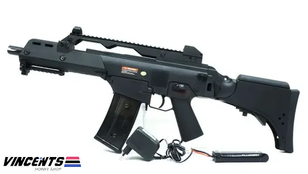 JG 6680 “G36 Compact Version” is an electric airsoft rifle with a semi and full-auto firing function, with a metal barrel and gearbox assembly. This rifle is perfect for close quarters.