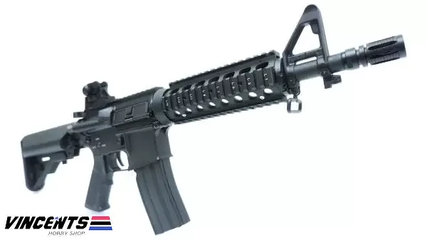 Double Belle 039 M4 CQB is an electric airsoft rifle with a semi and full-auto firing function. Also, this rifle is installed with a rail which provides space for optic attachments such as laser, scope, or flashlight.