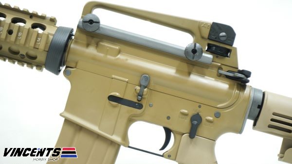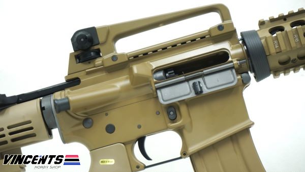 We M4 RIS Tan Version 3 is a gas blowback airsoft rifle with a semi and full-auto firing function. A modern type assault rifle equipped with metal RIS handguard, which allows any mounting tactical accessories.