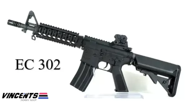 EC M4 RIS to CQB Interchangeable (EC 308 to 302) is an electric airsoft rifle with a semi and full-auto firing function. It is convertible from M4 CQB 302 to M4 RIS 308.