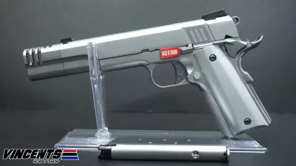 AW Custom NE3101 1911 Long Barrel with Compensator semi auto is a gas blowback airsoft pistol, also a semi and full-auto firing function. This is one of the brand new series pistols of Armorer Works.