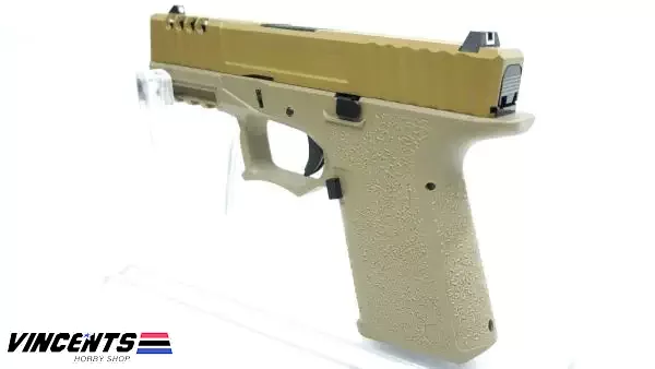 AW Custom 9101 Glock 19 Tan Semi Auto is a gas blowback airsoft pistol, also a semi and full-auto firing function. This is one of the brand new series pistols of Armorer Works.