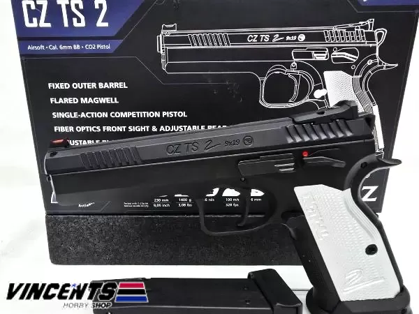 KJW ASG CZ TS2 is the newest gas-operated airsoft pistol gun from KJW. It has a semi-auto firing function with metal body.