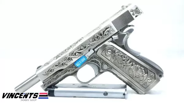 WE 1911 Floral “Collectors Edition” is a gas blowback airsoft gun with a semi-auto firing function. It is one of the best pistols to use for battle.