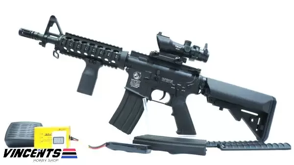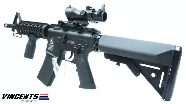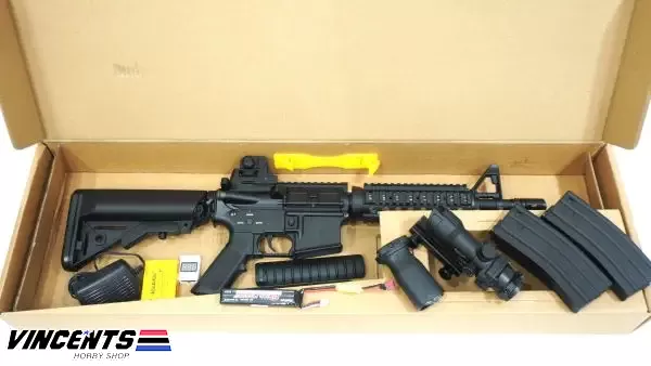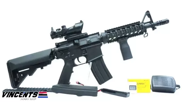 Level 1 UPGRADED – ( 530 to 560 FPS) Double belle 039 M4 CQB is an electric airsoft rifle with a semi and full-auto firing function. Also, this rifle is installed with a rail which provides space for optic attachments such as laser, scope, or flashlight.