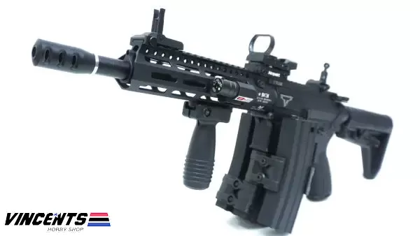 Level 1 Upgrade (530 – 560 FPS) Double Belle 058 MK9 “John Wick” (Full Set Up Version) is a semi-auto and fully automatic electric airsoft weapon. Its body is entirely made of metal. Excellent for both indoor and outdoor airsoft combat.