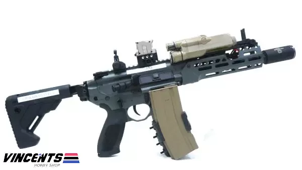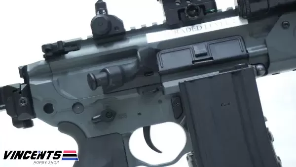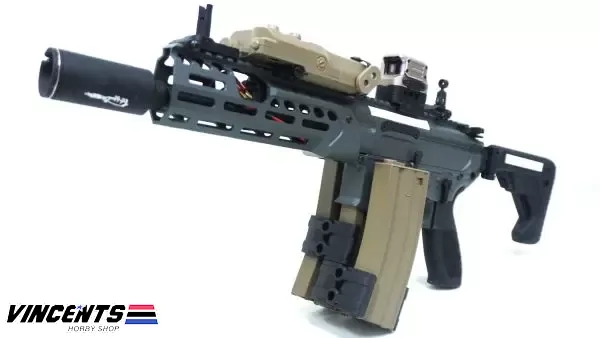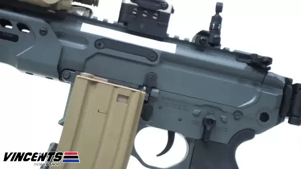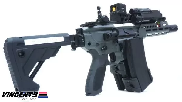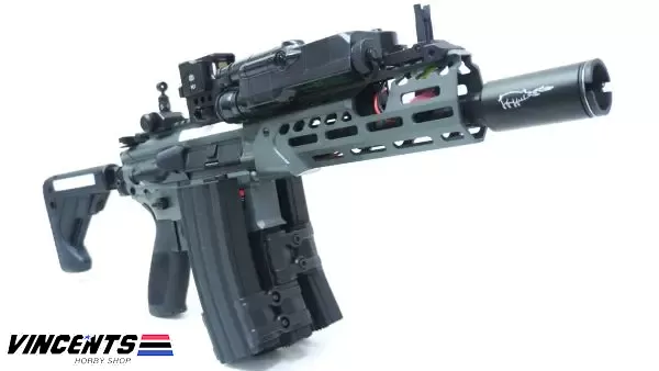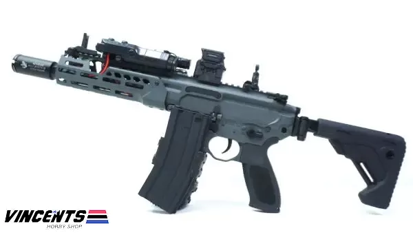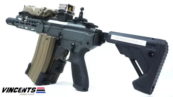 Level 2 Upgrade (630 to 660 FPS) EC S003 “MCX Rattler 8inch” (Set Up Version) Charcoal Gray is an electric airsoft rifle with a semi and full-auto firing function. It has a full metal body construction.