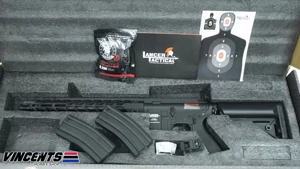 Lancer LT-33BA Gen2 Enforcer Black is an electric airsoft rifle with a semi and full-auto firing function.