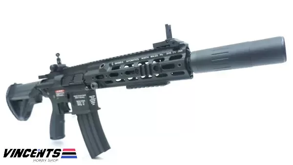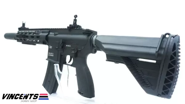 EC 105P + BR +SE HK416 Black is an electric airsoft rifle with a semi and full-auto firing function. It has a full metal body construction. Good for airsoft battles indoors or outdoors.