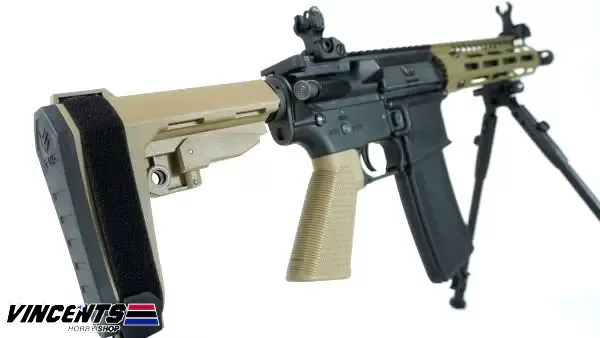 EMG KING ARMS “TROY” SOCC M4 7.6 Tan (Upgraded Version level 1) is M4 electric airsoft rifle is fully licensed by EMG and Troy Industries made by King Arms. EMG and King Arms both world renown for quality and durable airsoft guns and accessories. EMG Troy is available in three (3) variants: 7.6, 10.5 and 15 inch sizes. All variant posses the Troy industries trade mark logo.