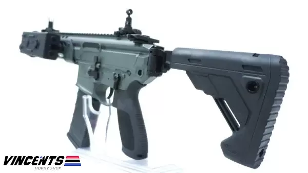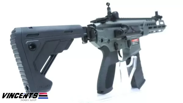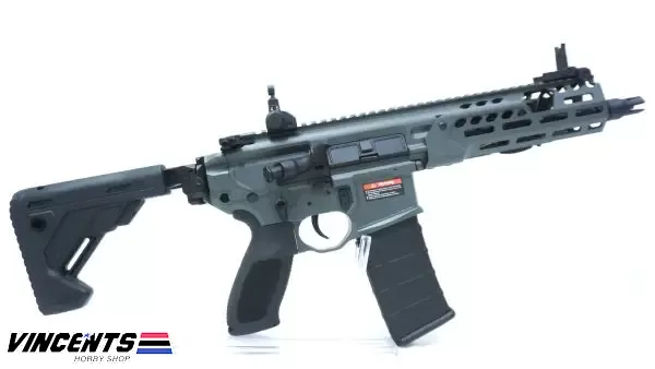 EC S003-1 “MCX Rattler 8 Blck/gray ” (with Ampeg Battery Case) is an electric airsoft rifle with a semi and full-auto firing function. It has a full metal body construction. Good for airsoft battles indoors or outdoors.