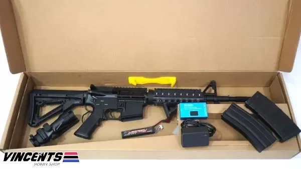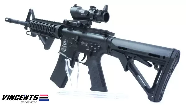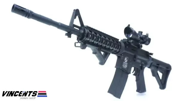 Level 1 UPGRADED – ( 530 to 560 FPS) Double belle 039 M4 CQB is an electric airsoft rifle with a semi and full-auto firing function. Also, this rifle is installed with a rail which provides space for optic attachments such as laser, scope, or flashlight.