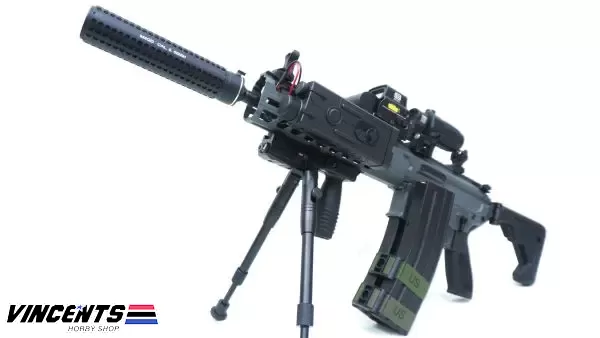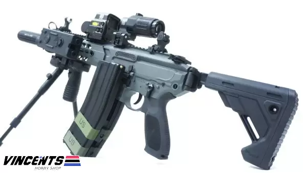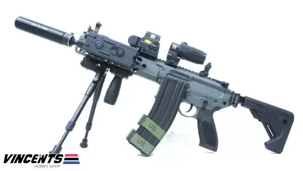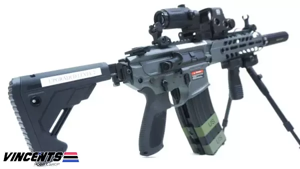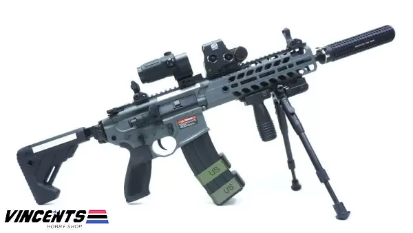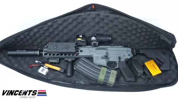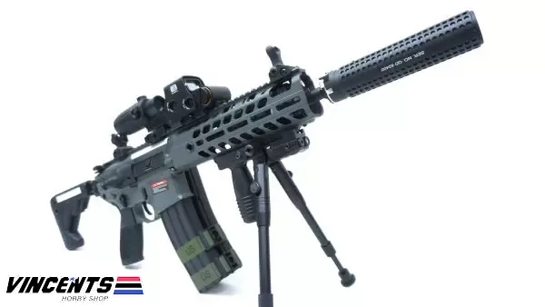 Level 2 Upgraded (600 – 650 FPS) EC S001 Rattler Black/Gray 9.5inch (SET UP VERSION) is an electric airsoft rifle with a semi and full-auto firing function. It has a full metal body construction. Good for airsoft battles indoors or outdoors.