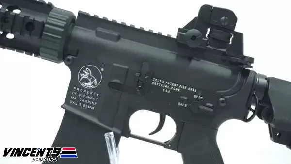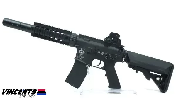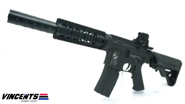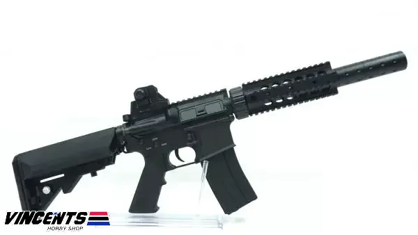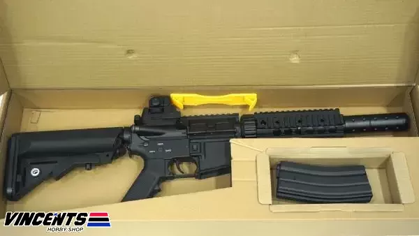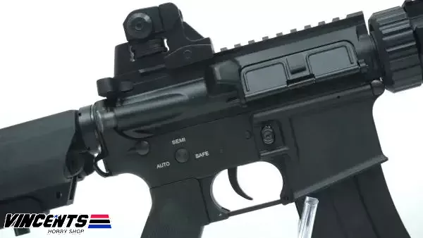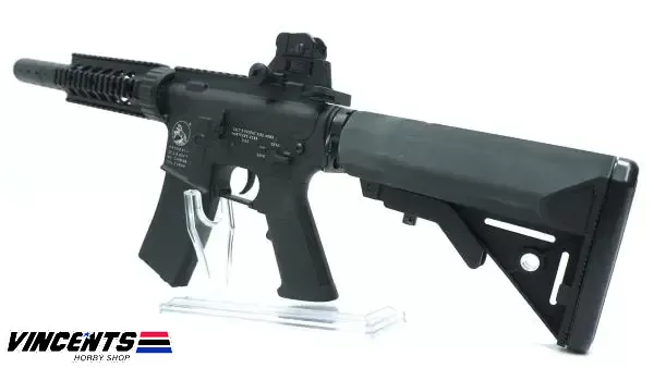 Double Belle 038 M4 CQB is an electric airsoft rifle with a semi and full-auto firing function. Also, this rifle is installed with a rail which provides space for optic attachments such as laser, scope, or flashlight.